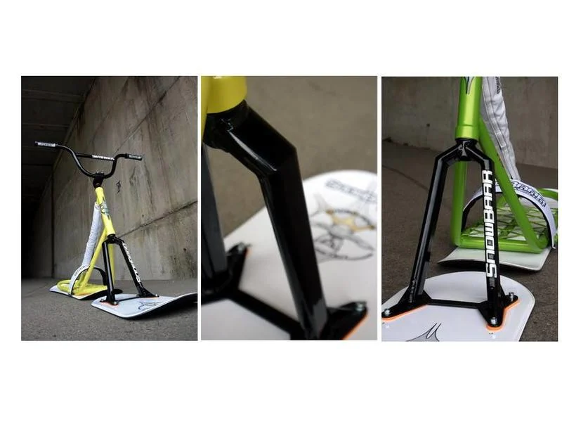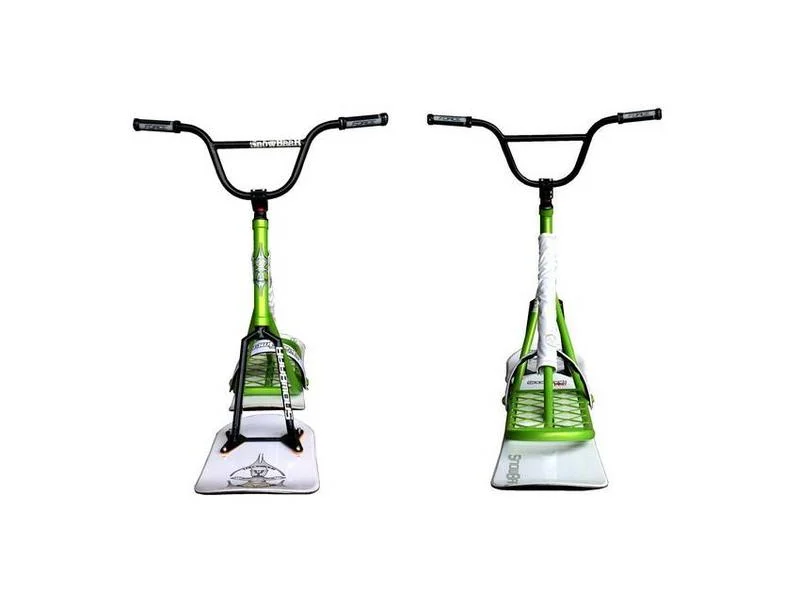 The snowscoot is made in the Czech Republic and is suitable for both beginners and experienced skiers. This model has been developed for the fun park and focused on freestyle. The fork and headset stand up straighter than with the SnowBaar Snaker (PRO) variant.